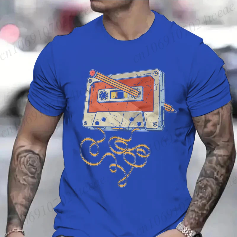 Men’s Vintage Cassette Tape with Pencil T-shirt Shirts for Guys Funny Graphic Tees Birthday Clothes Fashion Casual Men’s Tees