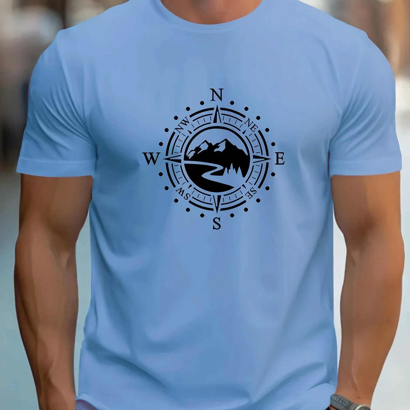 Summer Men's Casual Loose Large Compass Pattern Printed Sports Comfortable Round Neck Short Sleeve T-shirt TopSummer Men’s Casual Loose Large Compass Pattern Printed Sports Comfortable Round Neck Short Sleeve T-shirt Top
